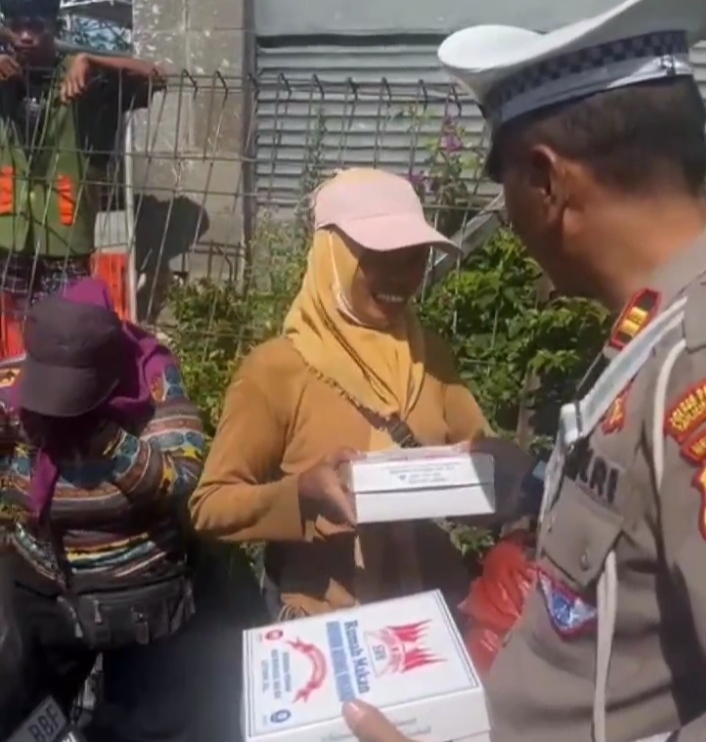 “Pada hari Sabtu tanggal 1 Maret 2025, Satlantas membagikan 100 Bok Nasi Padang. Ini dibagikan kepada para Sopir, Petugas Kebersihan, Ojeg, Buruh dan Pekerja yang sedang masuk untuk bekerja di Jalan Raya Paliat Pelabuhan Tanjung Priok,” jelas AKP Martha, Minggu (2/3/2025).