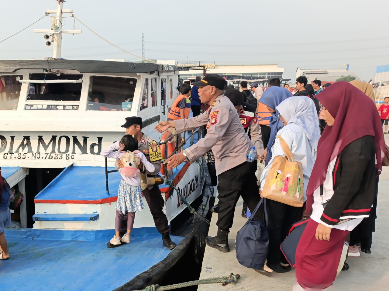 AIPDA Supriyadi juga membantu penumpang ibu lansia, anak-anak, naik ke atas kapal serta mengangkat barang bawaan penumpang tersebut sebagai pelayanan kepada masyarakat, ungkap Kapolsek Kawasan Sunda Kelapa AKP Hitler Napitupulu, S.H., M.H., Senin (7/7/2025).