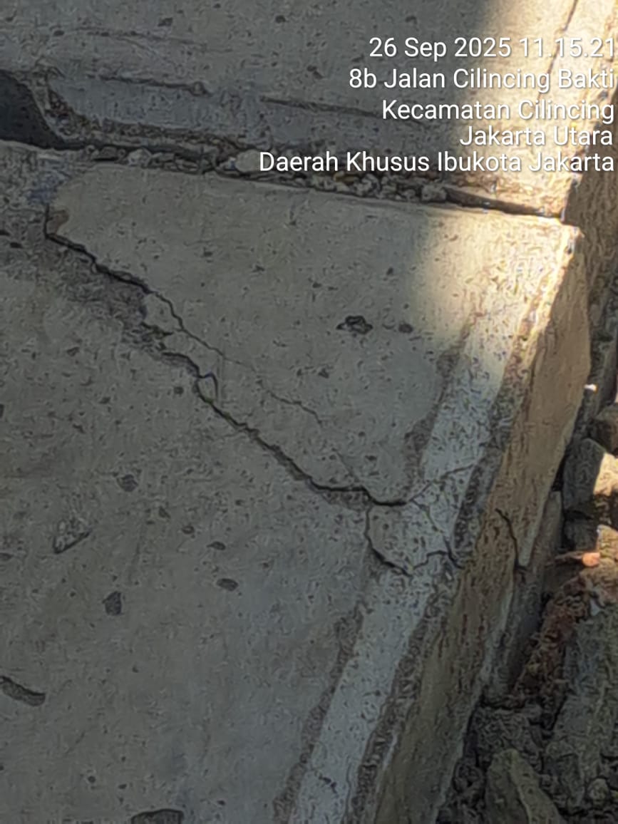Warga Jalan Bhakti IX RT 09 dan RT 10 dari RW 05 dan 06 Kelurahan Cilincing Kecamatan Cilincing Jakarta Utara mengeluhkan terkait pekerjaan yang belum diselesaikan Kerjaan proyeknya yaitu Pengecoran Jalan pasca diurug dan pembenahan Drainase.