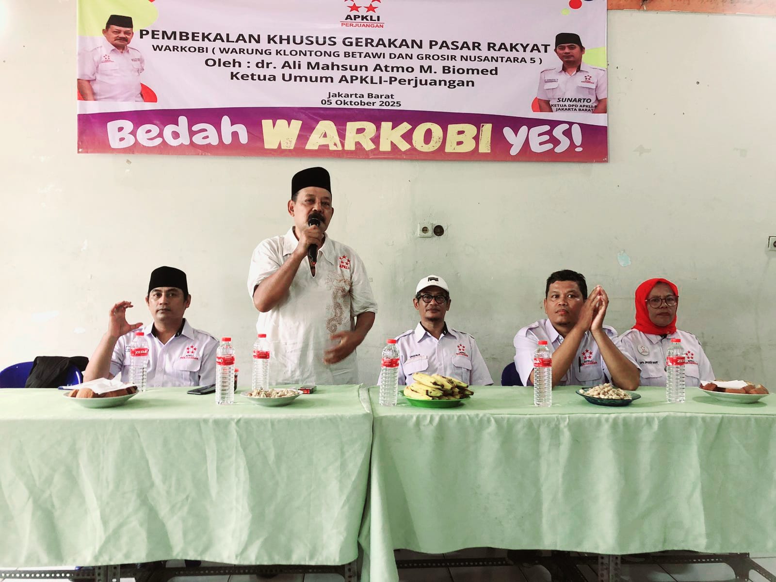 Jakarta,www.jayaposnews.co.id – Dalam upaya wujudkan 20 Ribu Warkobi (Warung Kelontong Betawi) diperlukan operasi teritorial 200 warung kelontong per kelurahan di 44 kecamatan se-DKi Jakarta. Hal ini untuk pastikan 50% atau 100 WARKOBI di 267 kelurahan terwujud atau 26.700 WARKOBI se-DKI Jakarta. Karena Operasi teritorial itu dikatakan sukses jika bisa pastikan 50% tergalang dengan baik. Hal tersebut disampaikan Ketua Umum APKLI Perjuangan dr Ali Mahsun ATMO M Biomed dihadapan jajaran pengurus DPP, DPW Provinsi dan DPD Se-DKI Jakarta, serta DPC 8 Kecamatan se-Jakarta Barat di Jelambar Minggu 5 Oktober 2025.