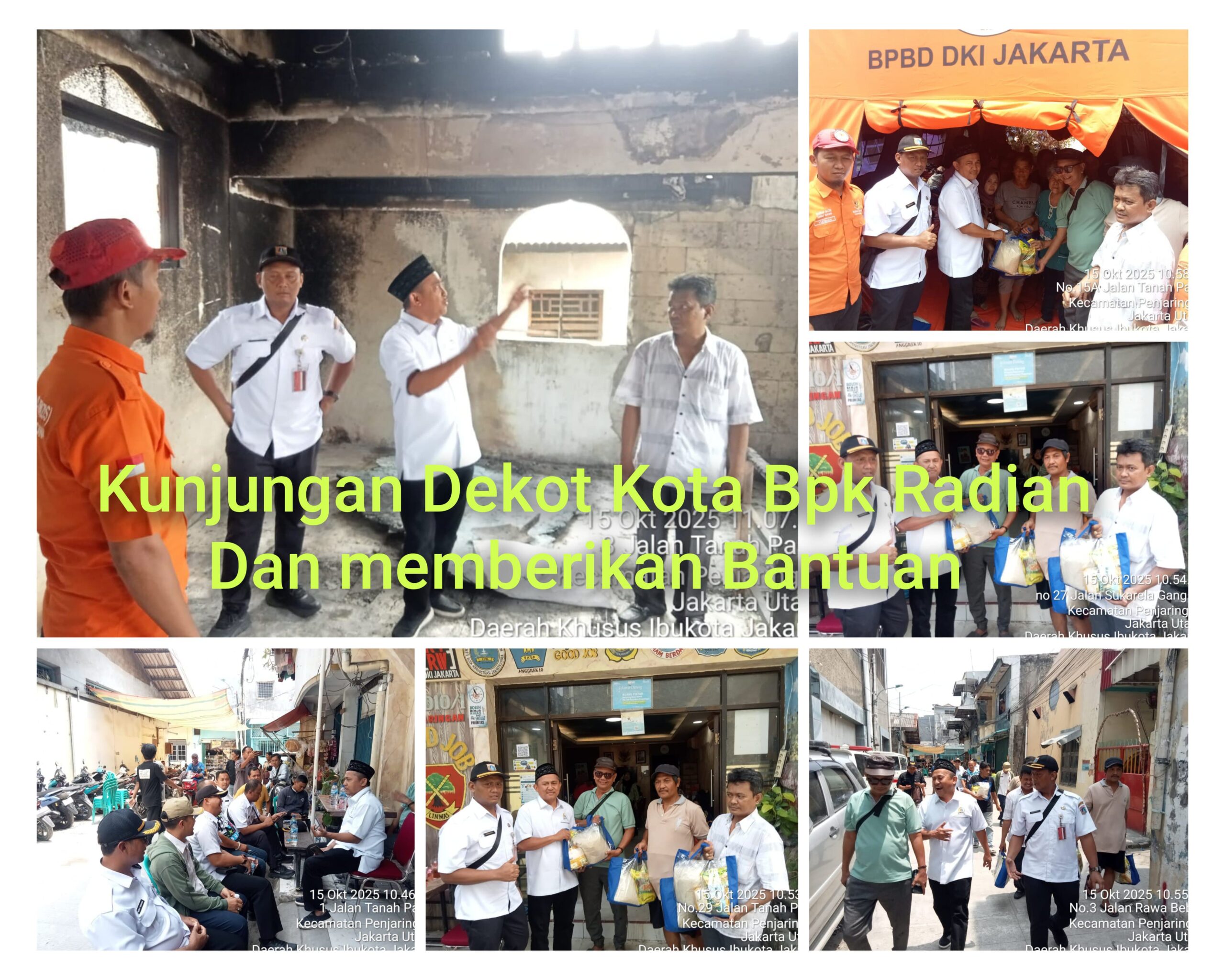 Selanjutnya dewan kota Radian Azhar yang didampingi sekertaris kelurahan penjaringan Kristanto menyerahkan bantuan berupa bingkisan sembako dan aplok berisi uang saku secara simbolik kepada Ketua RW H.Rakib juga korban kebakaran rawa bebek Rw.010 yang menghanguskan puluhan hunian warga di 3 Rt serta menyebabkan korban luka bakar 2 orang yang sekarang sedang dirawat di rumah sakit umum daerah Koja dan Rumah Sakit Cipto Mangunkusomo