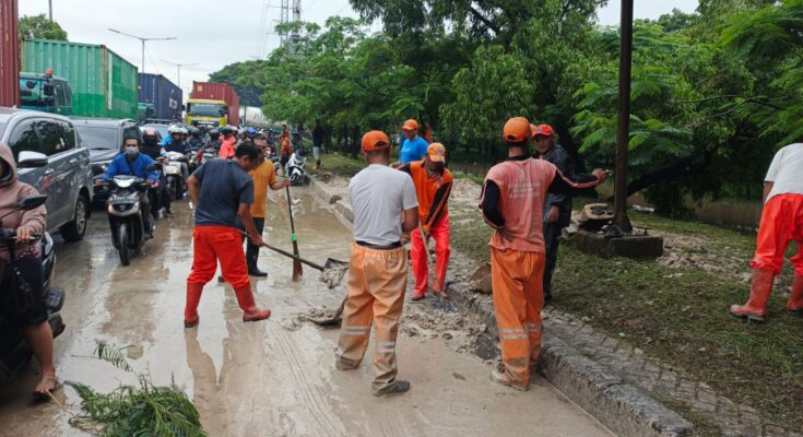 Jakarta, Jayaposnews — Ditengah tengah kepadatan arus lalu lintas, sebanyak 20 petugas PPSU Kelurahan Cilincing, melakukan aksi bersih-bersih di Jalan Raya Akses Marunda, Cilincing, Jakarta Utara, Jumat (30/1/2026). Paska banjir yang melanda hampir seluruh wilayah Jakarta, termasuk Jalan Raya Akses Marunda di wilayah Cilincing juga terendan banjir dan mengakibatkan jalanan menjadi berlumpur dan licin. Dengan kondisi jalan seperti itu, pihak kelurahan Cilincing langsung turun ke lokasi dan melakukan pembersihan jalan dari lumpur dan sampah yang tentunya sangat mengganggu masyarakat pengguna jalan.