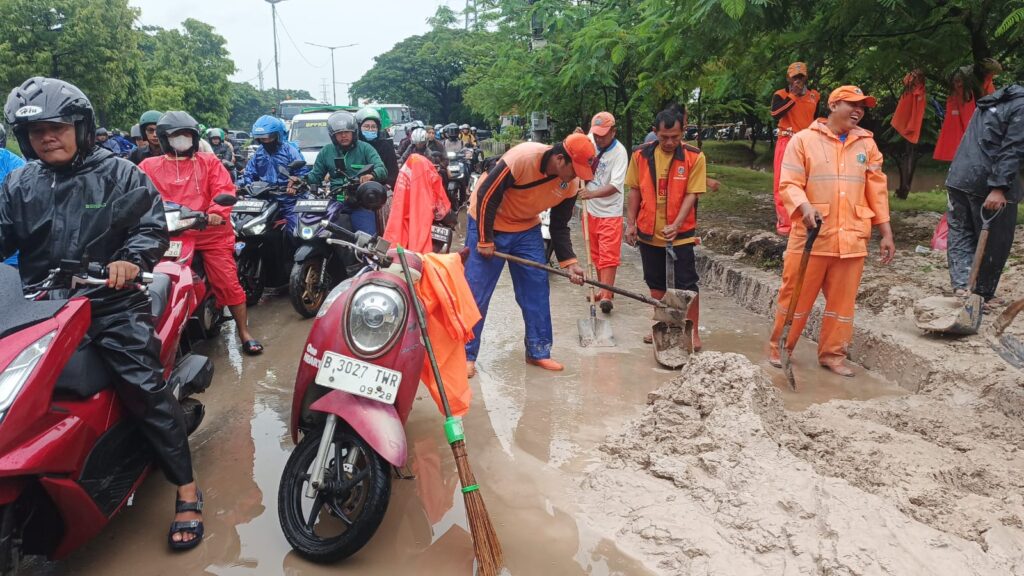 “Kita melakukan pembersihan jalan dari lumpur dan sampah agar pengguna, khususnya bagi pengendara kenderaan roda dua maupun roda empat dan kenderaan lainnya tidak mengakibatkan kemacetan dan mencegah kecelakaan akibat jalanan yang licin,” ijar seorang anggota PPSU Kelurahan Cilincing.