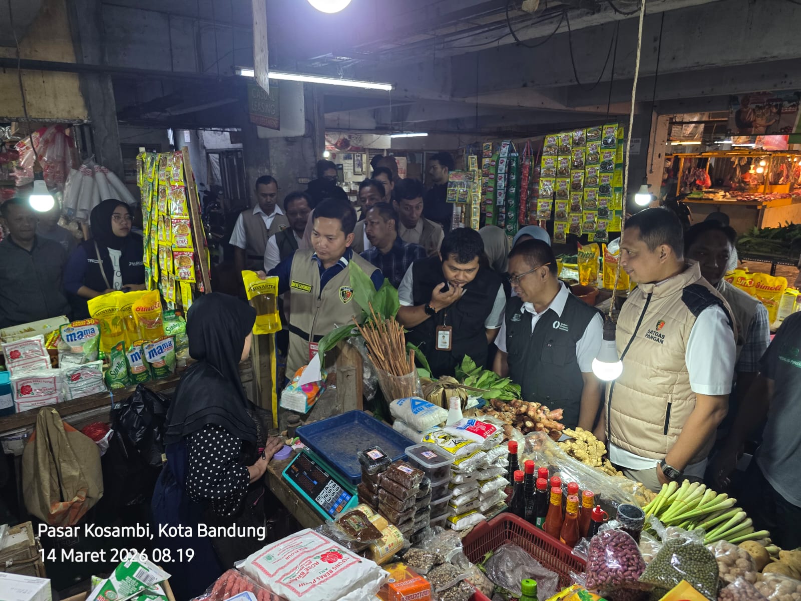Dari hasil pengecekan di Pasar Kosambi, sebagian besar komoditas pangan masih sesuai dengan HET/HAP, seperti: Minyakita, Beras SPHP, Cabai Merah Keriting, Bawang Merah, Bawang Putih, Gula Konsumsi, Daging Ayam Ras, Daging Sapi namun ditemukan harga cabai rawit merah masih diatas HAP dan Telur Ayam Ras masih diatas HAP, mengingat para pedagang/pengecer mengambil komoditas tsb sdh mepet atau melewati HAP, sehingga dari hasil tersebut Satgas Saber mendatangi distributor di Pasar Induk Caringin untuk mengecek kebenaran informasi tersebut ke distributor. Hasil pengecekan, Harga cabai naik mengingat Pedagang di Pasar Induk Caringin mendapat pasokan dari produsen/petani di Lembang sdh diatas HAP di harga Rp 75.000 dengan alasan produksi menurun akibat curah hujan tinggi dan serangan hama. Oleh karena itu Kadis Perdagangan Kota Bandung disarankan untuk dapat koordinasi daerah sentra produksi cabai dan berikan fasilitasi dukungan distribusi (FDP) untuk membantu biaya transportasi, sehingga dapat menurunkan harga Cabai Rawit Merah